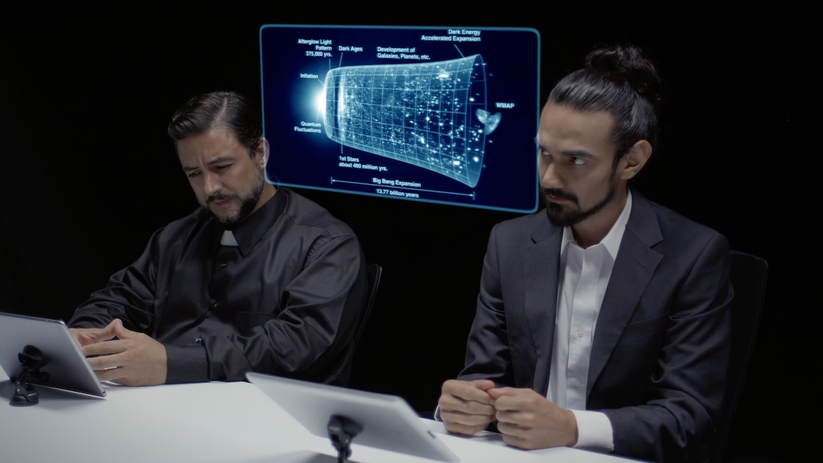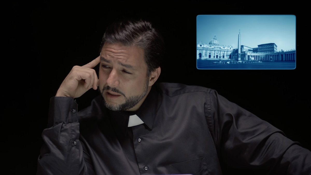 However, due to a complicated situation in the Vatican, Leo is kidnapped before he can attend the meeting, and it is up to his guests to produce a video-recorded conclusion to these questions before it's too late.